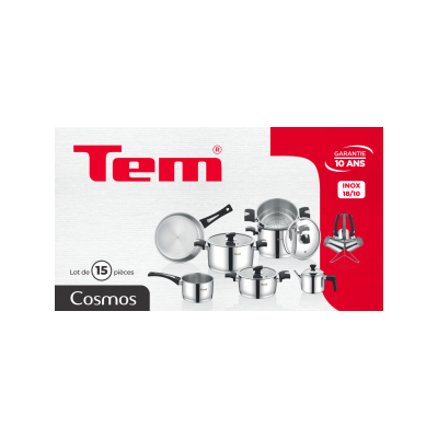 BATTERIE DE CUISINE 15 PIÈCES COSMOS EN INOX 18/10 TEM