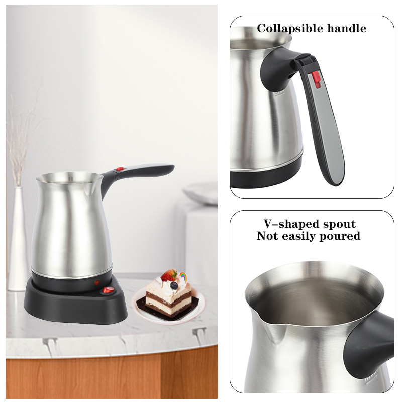 Préparez facilement votre café turc traditionnel ou vos boissons chaudes grâce à cette bouilloire électrique turque 0.5L en acier inoxydable. Compacte et élégante, elle est idéale pour la maison, les hôtels ou les bureaux.