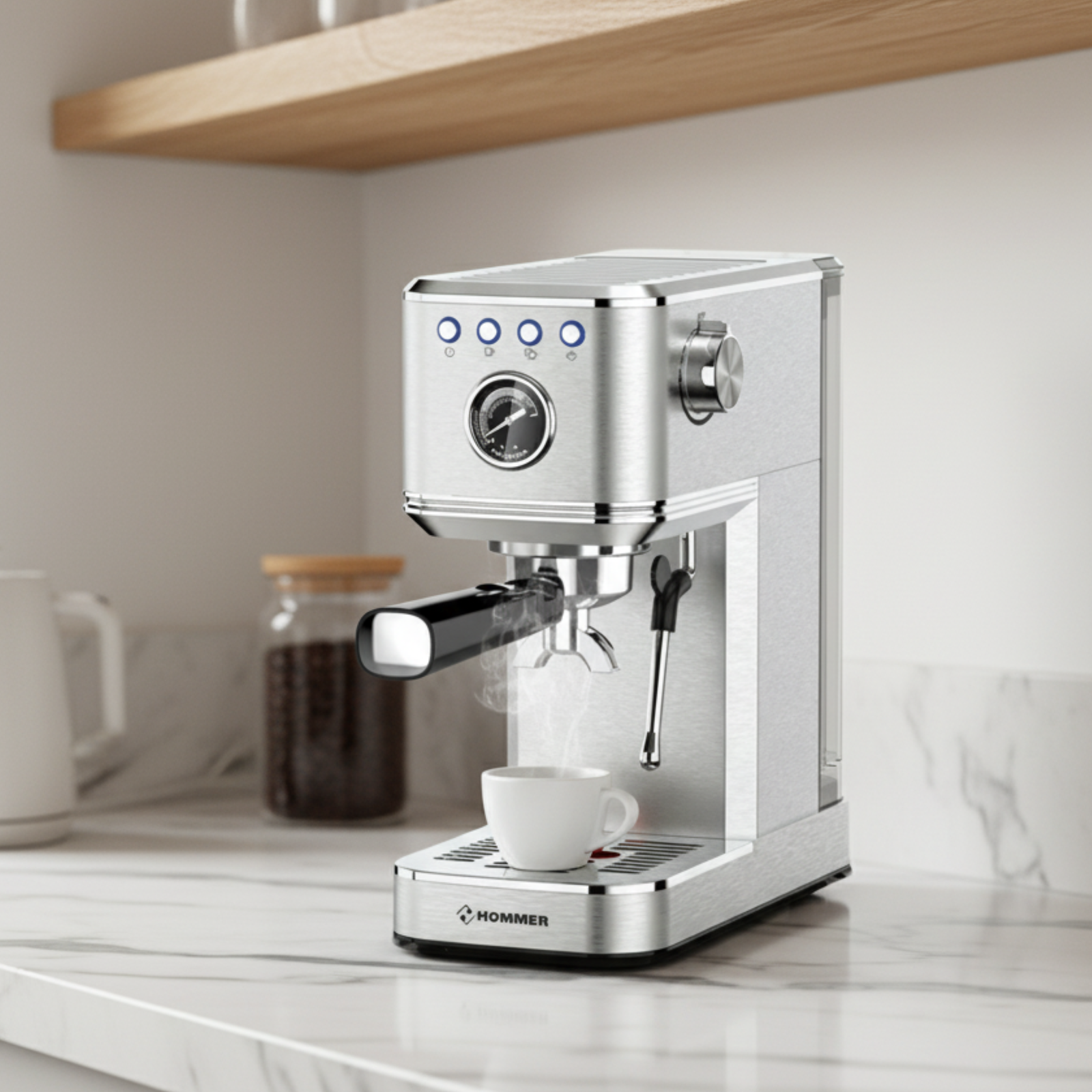 Cafetière Espresso Hommer Thermoblock 20 Bars en Inox – Machine à Café 1350W