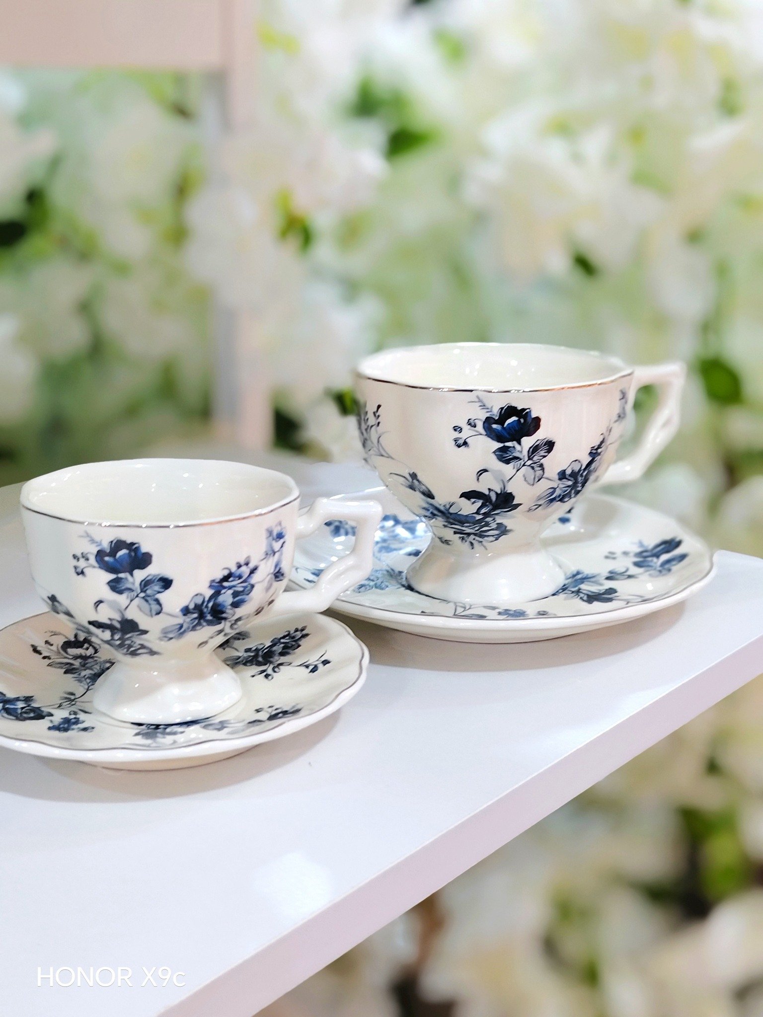 Coffret Service Café 12 Pièces en procelaine – Café au Lait & Café Turc Floral Bleu