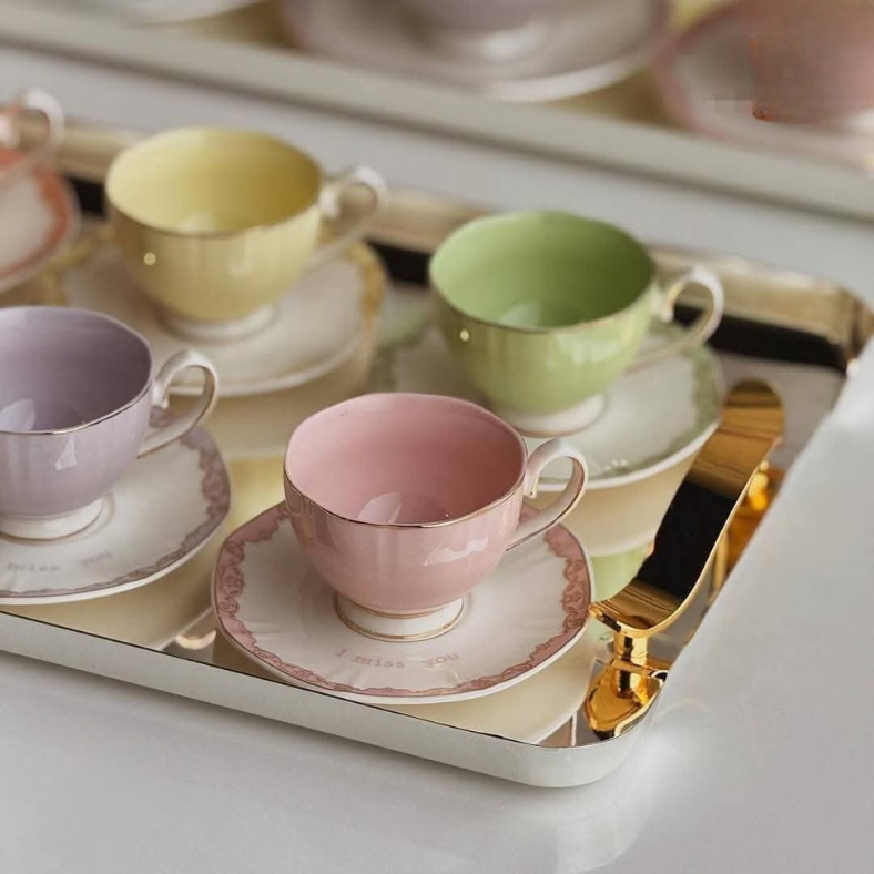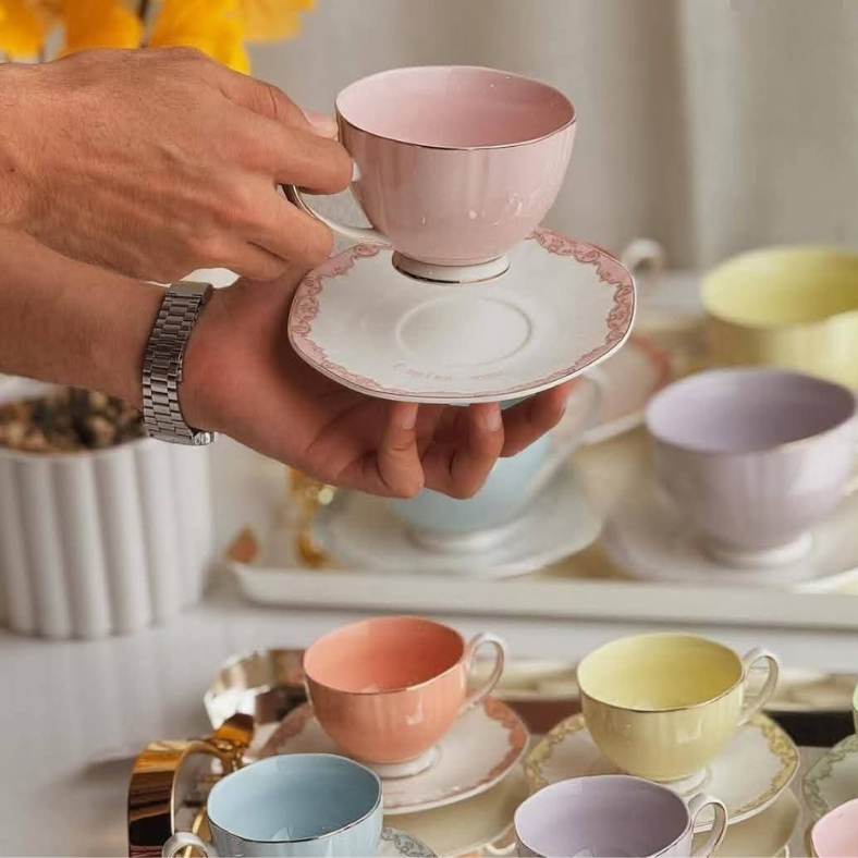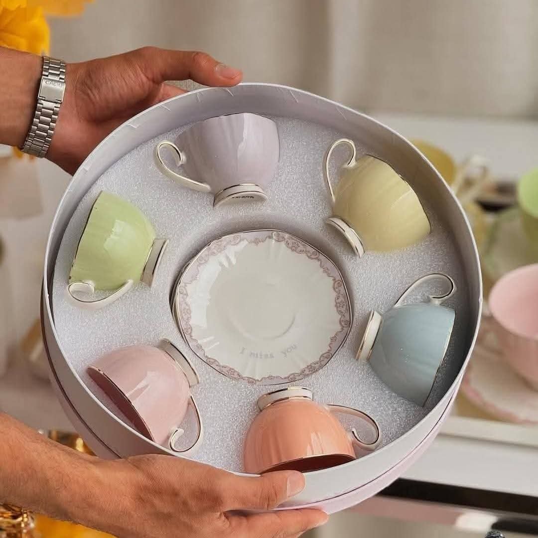Nombre de pièces : 12 pièces (6 tasses à café au lait + 6 sous-tasses assorties )