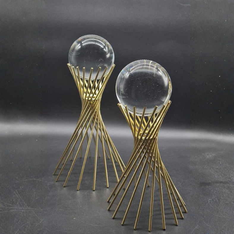 Set de 2 Élements Décoratifs en Verre & Métal Dorés